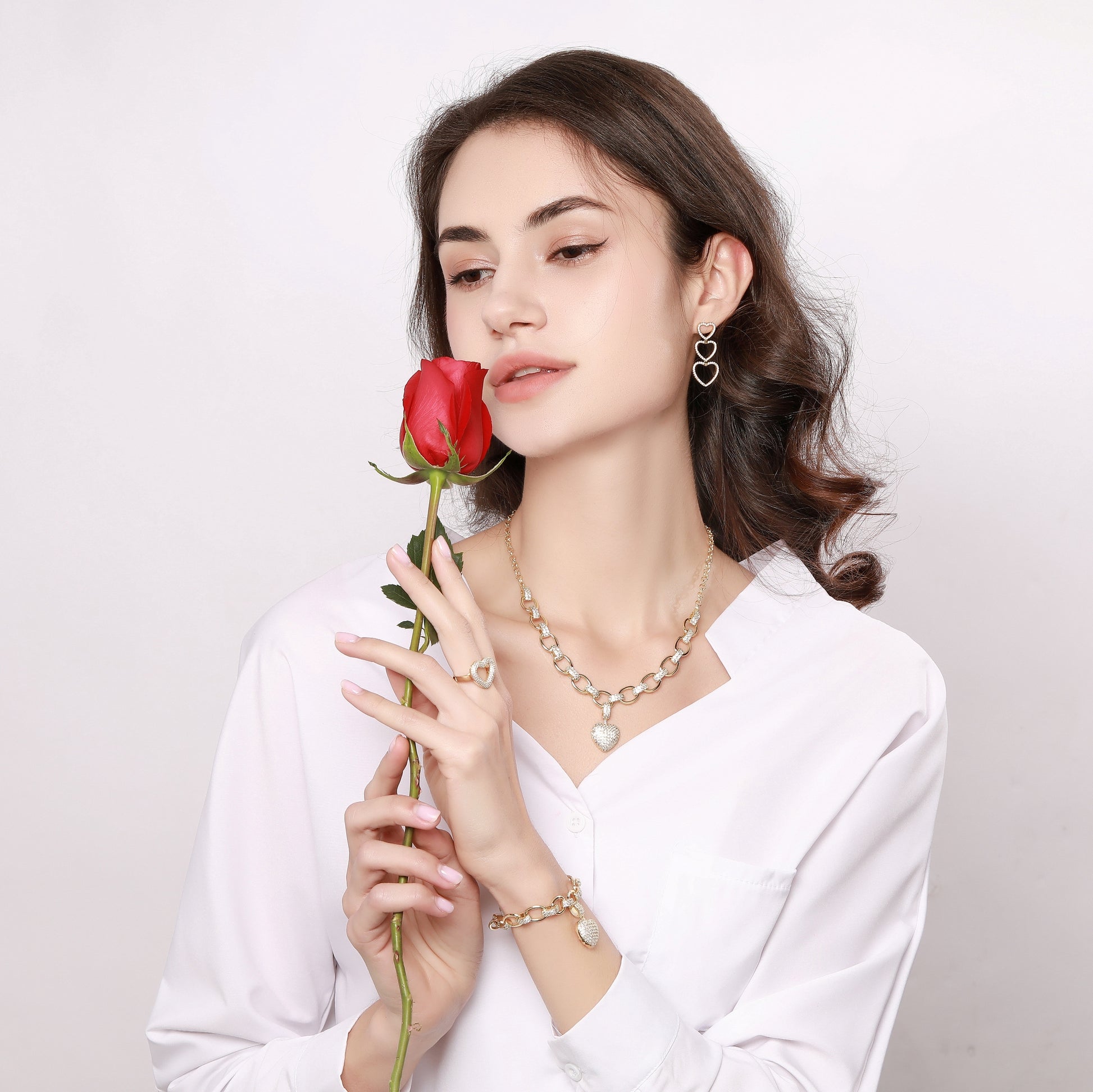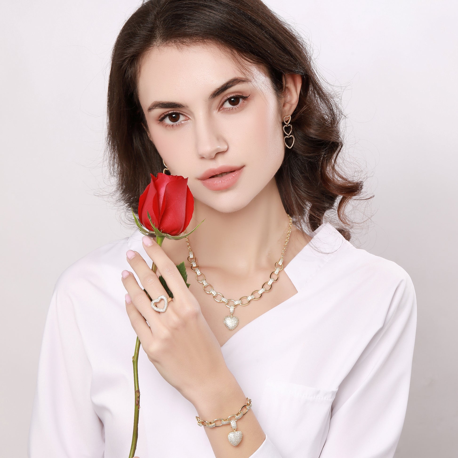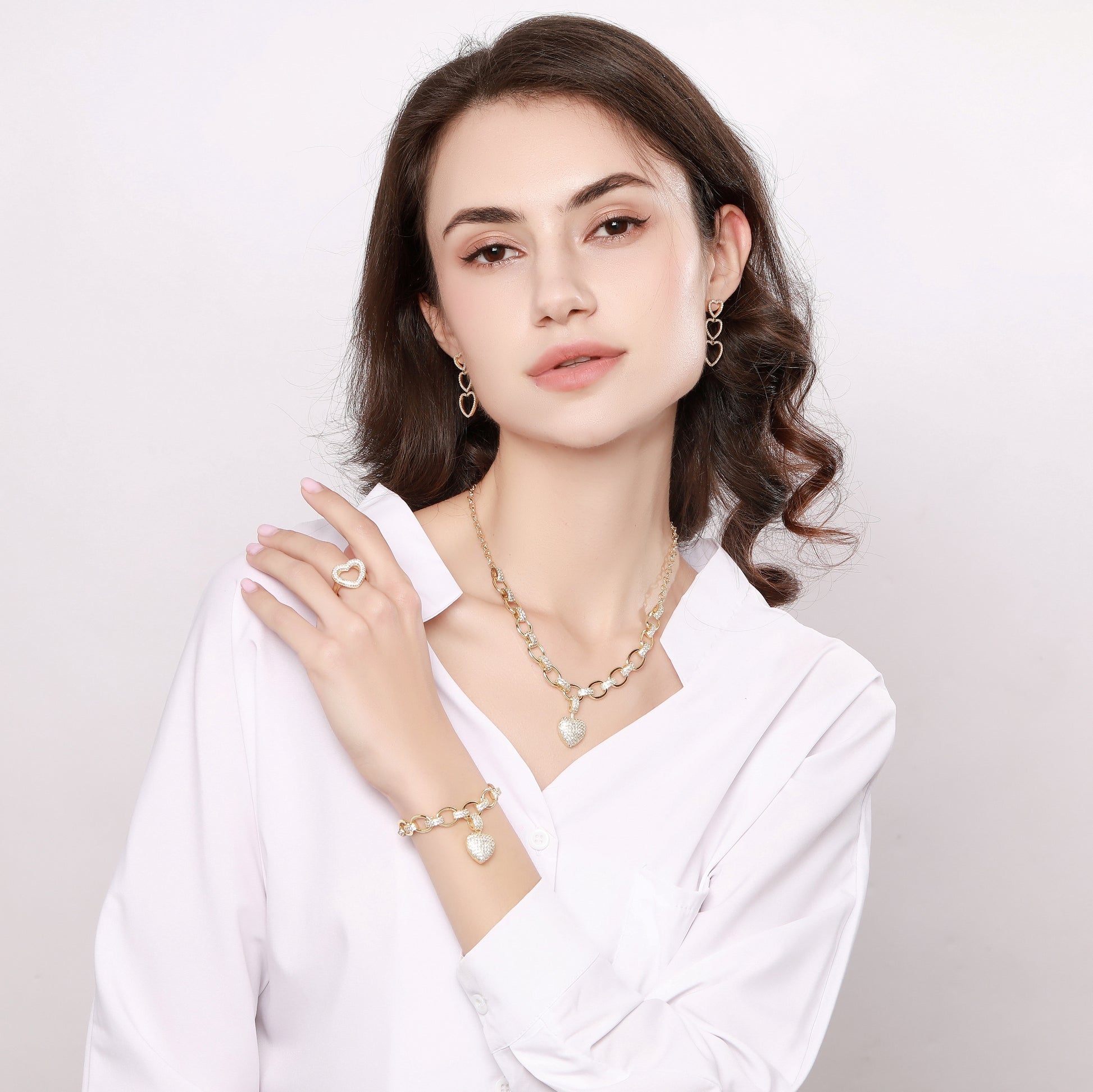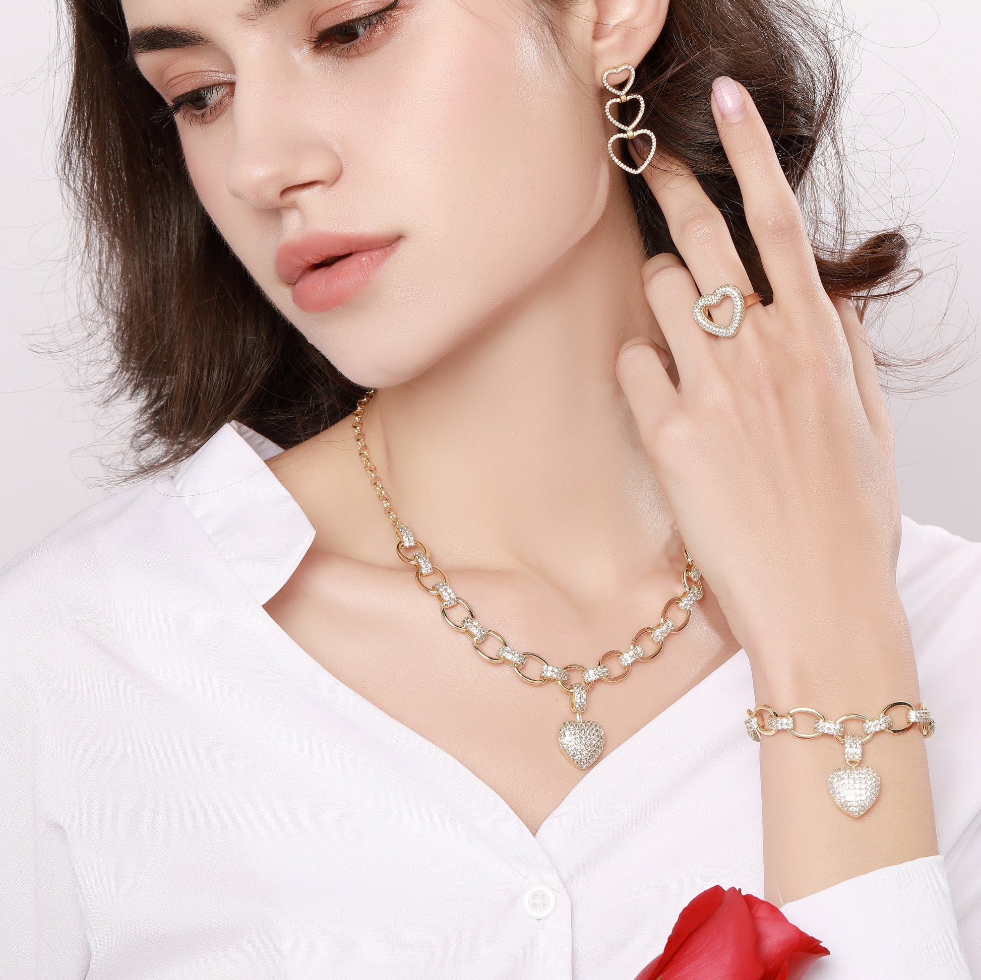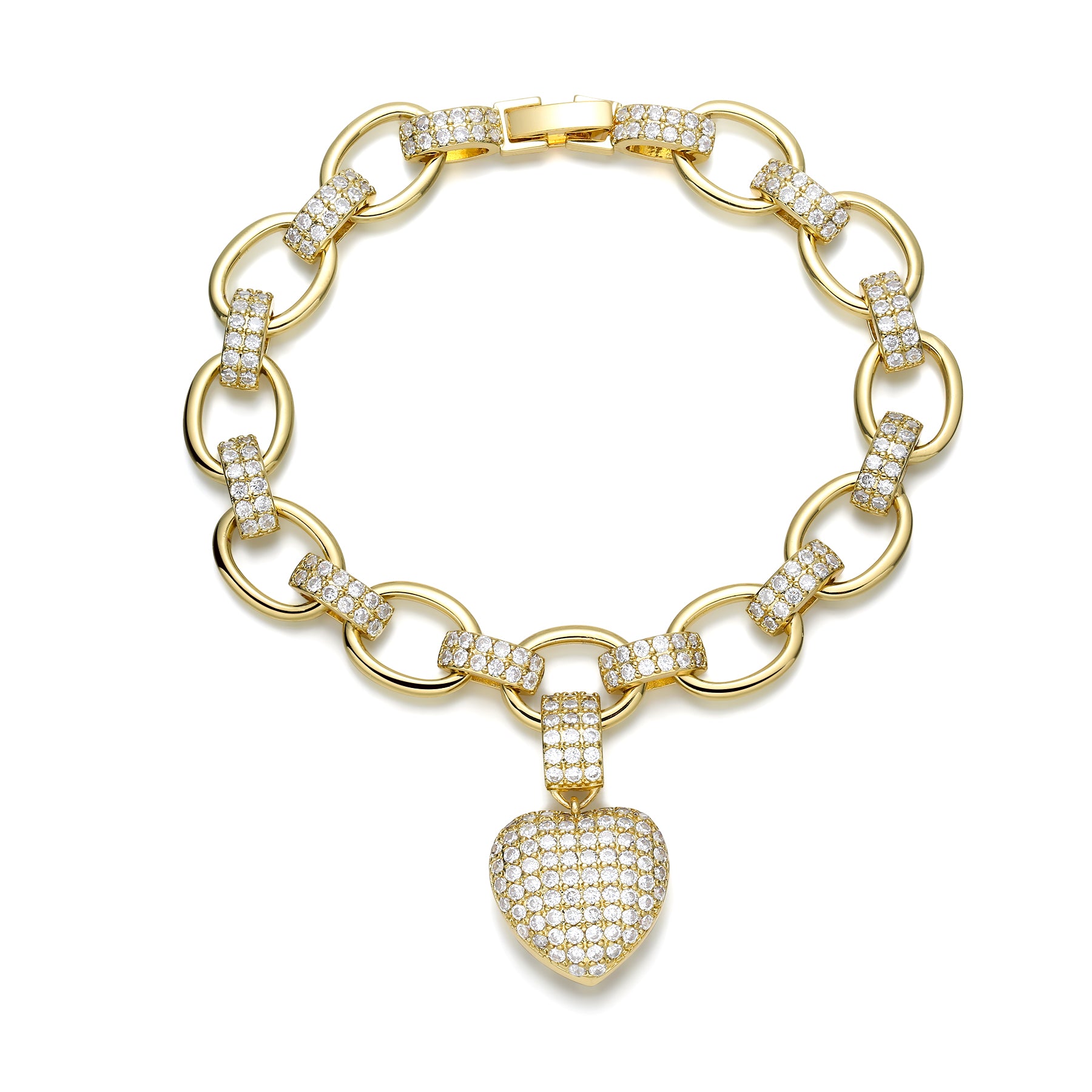 This chunky style bracelet is a beautiful add to your jewelry collection. Close-set cubic zirconia adorn this beautiful heart-shaped gold bracelet to add a touch of bling & shine to your jewelry collection ! The stand out style is sure to get you noticed!