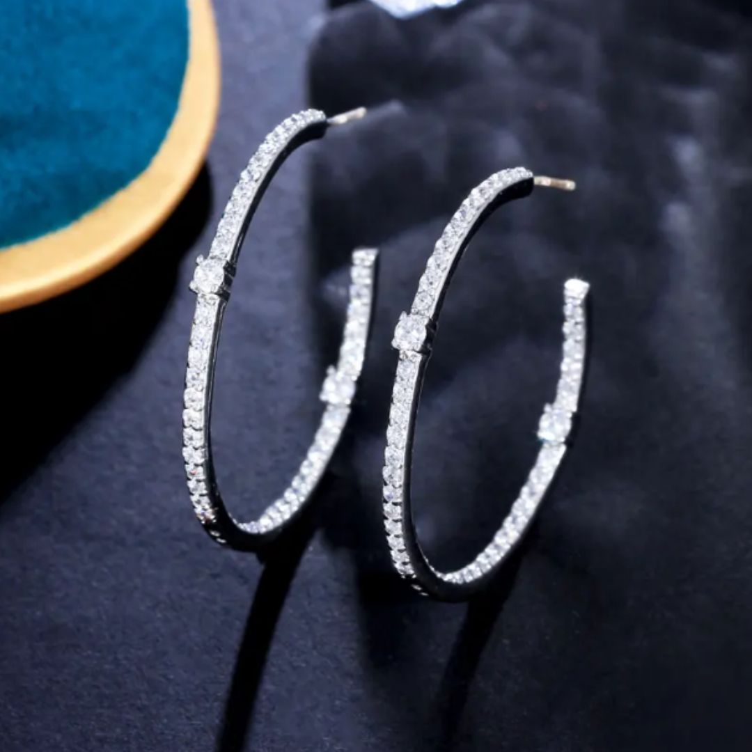 Timeless elegance meets modern sophistication with our Alexis Designer Hoop Earrings. These sleek, crystal-studded hoops feature a delicate yet striking design, accented with brilliant-cut stones for a refined sparkle. Lightweight and versatile, they add a touch of glamour to any occasion, making them a must-have for your jewelry collection.