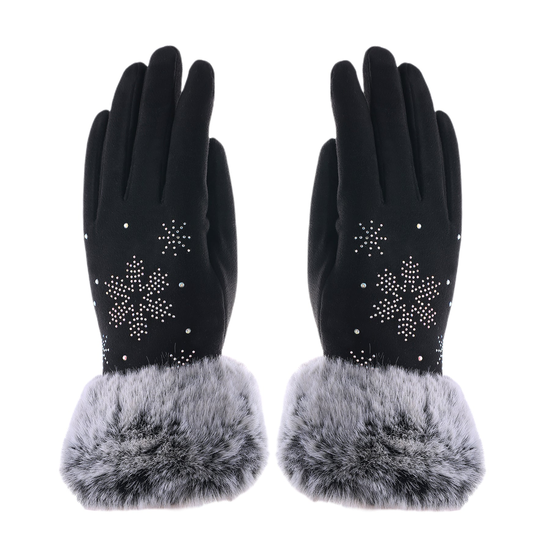 Audrey Faux Fur Gloves in Black with Snowflake Design