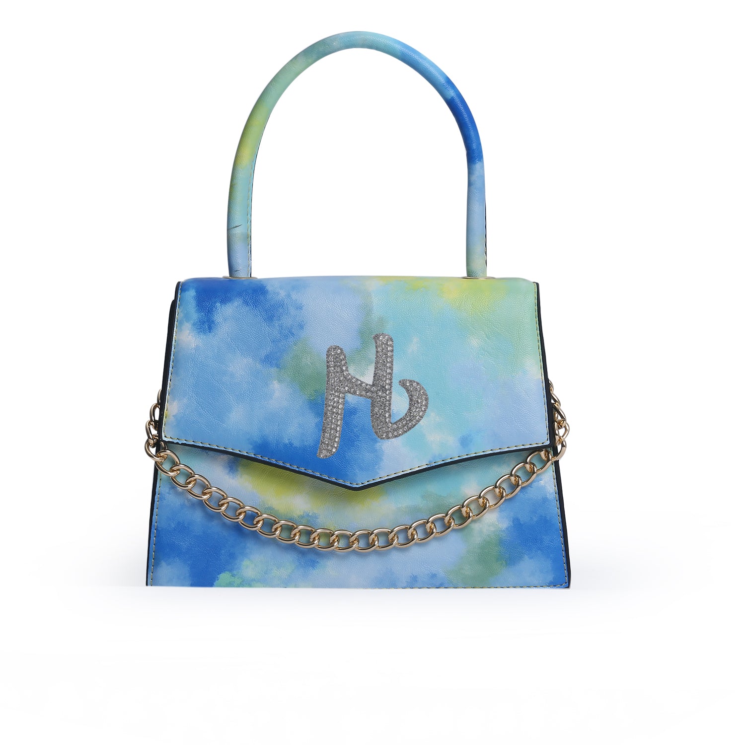 Great fun for anything from running errands to a night on the town! The Bianca comes in a variety of tie-dyed colors. Inspired by our other Bianca products, the bag has a playful gold chain decorating the front. Use the matching shoulder strap or the smaller handle.