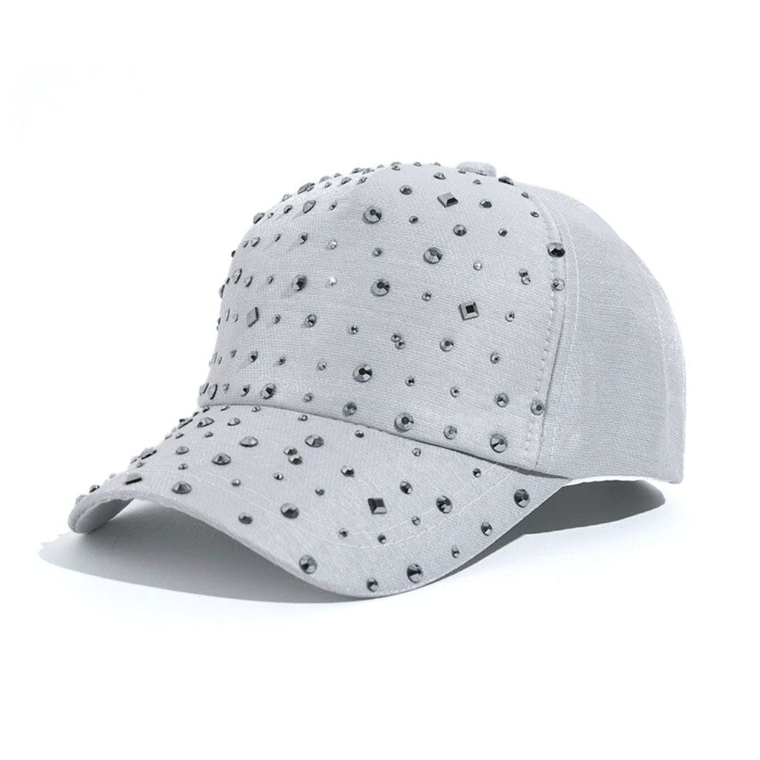 Introducing the New Bray Crystal Hat – a dazzling addition to any fashion-forward wardrobe. This chic white baseball cap is meticulously adorned with an array of shimmering crystals and polished square studs, creating an eye-catching pattern that catches the light beautifully. Crafted with a premium cotton blend, the hat boasts a comfortable fit with an adjustable strap to suit any head size. Perfect for adding a touch of glamour to a casual daytime look or for elevating an evening ensemble, the New Bray Crystal Hat is sure to make a statement wherever you go.