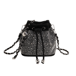 Featuring a soft dark pink velvet base, sparkling rhinestones, and a silver-tone drawstring closure, BRENNA delivers instant elegance. A chain-link strap with faux leather detailing adds comfort and luxury—perfect for evening events or any moment that calls for standout style.