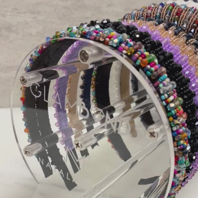 The NEW Brianna headband is set with gorgeous black & gold crystals patterned in alternating stripes. This non-slip headband is the perfect accessory for a night out!