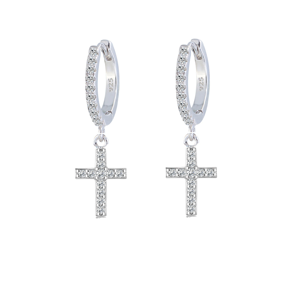 Calah Silver Rhinestone Cross Earrings