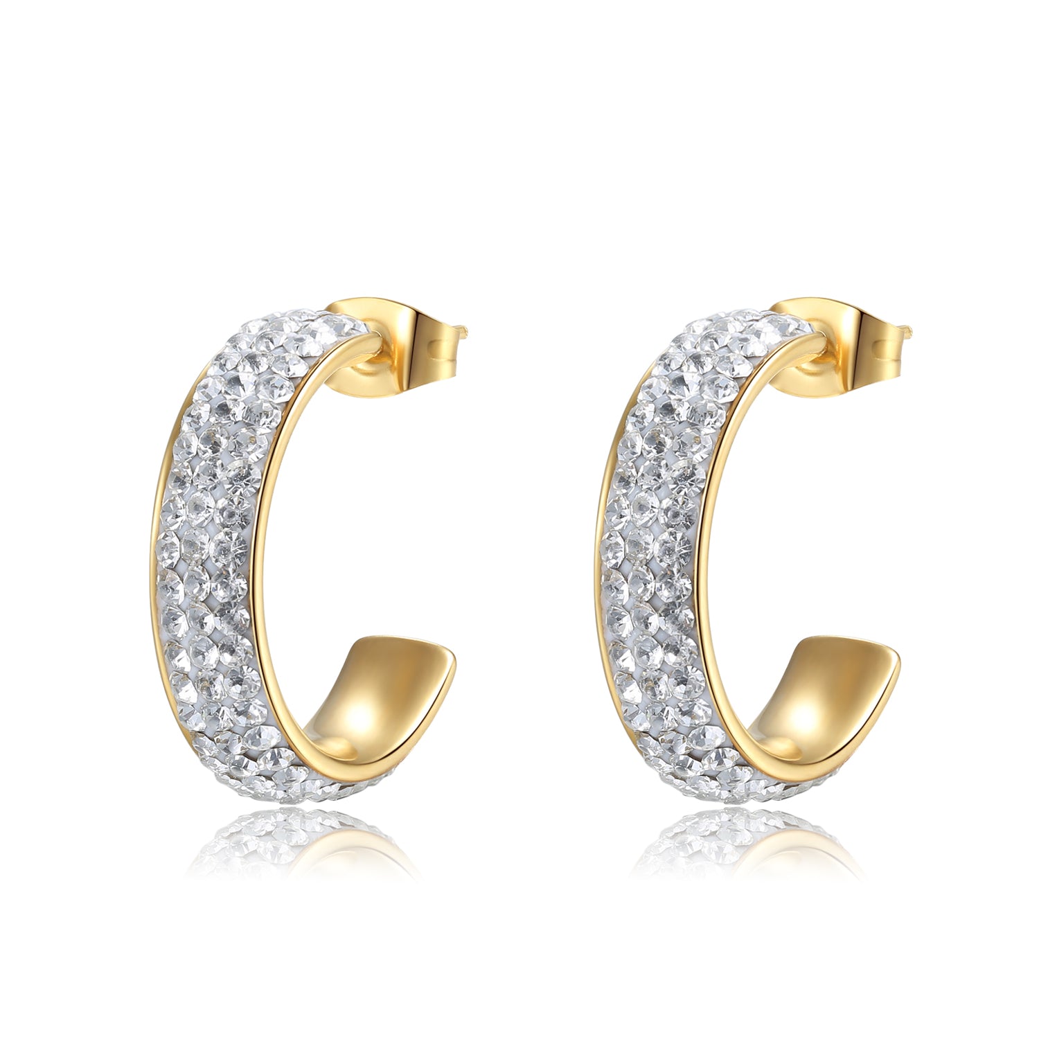 Sophisticated and elegant, these hoop earrings will elevate every occasion. Wear independently, or get the full white crystal on GOLD set from the collection!