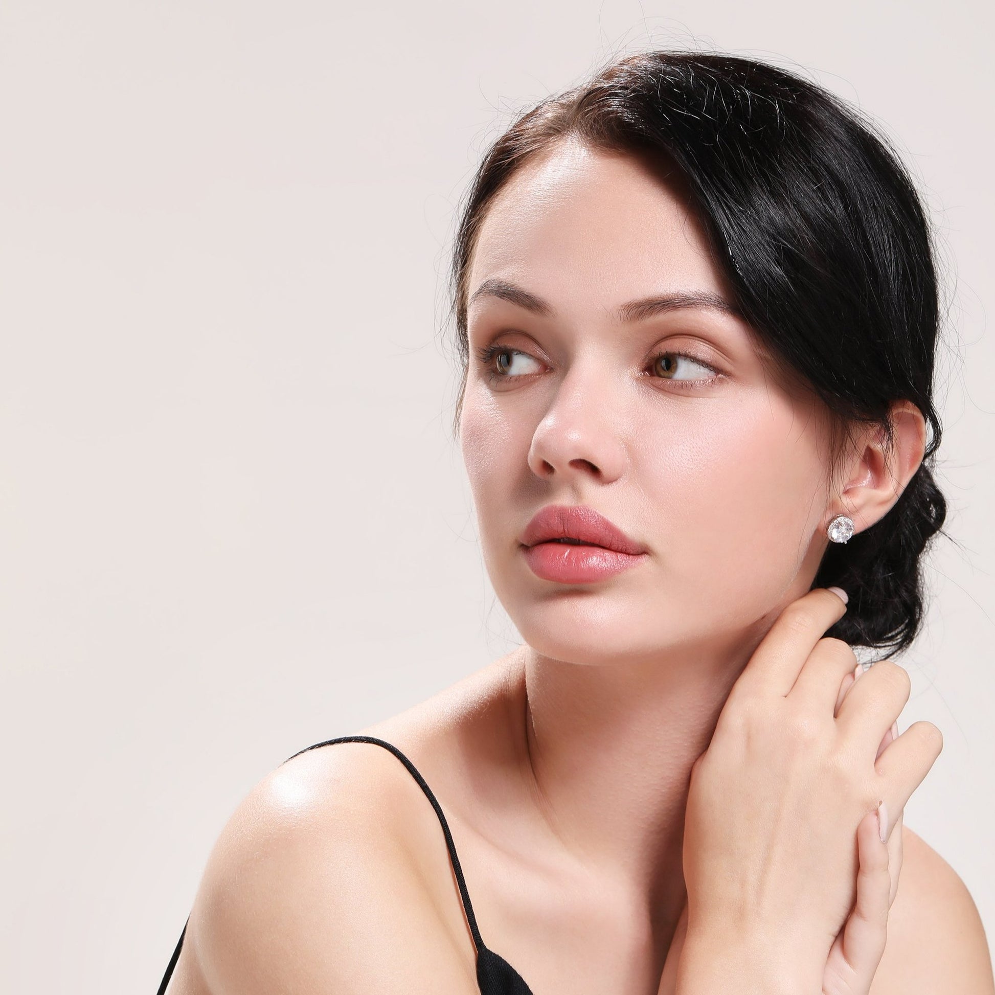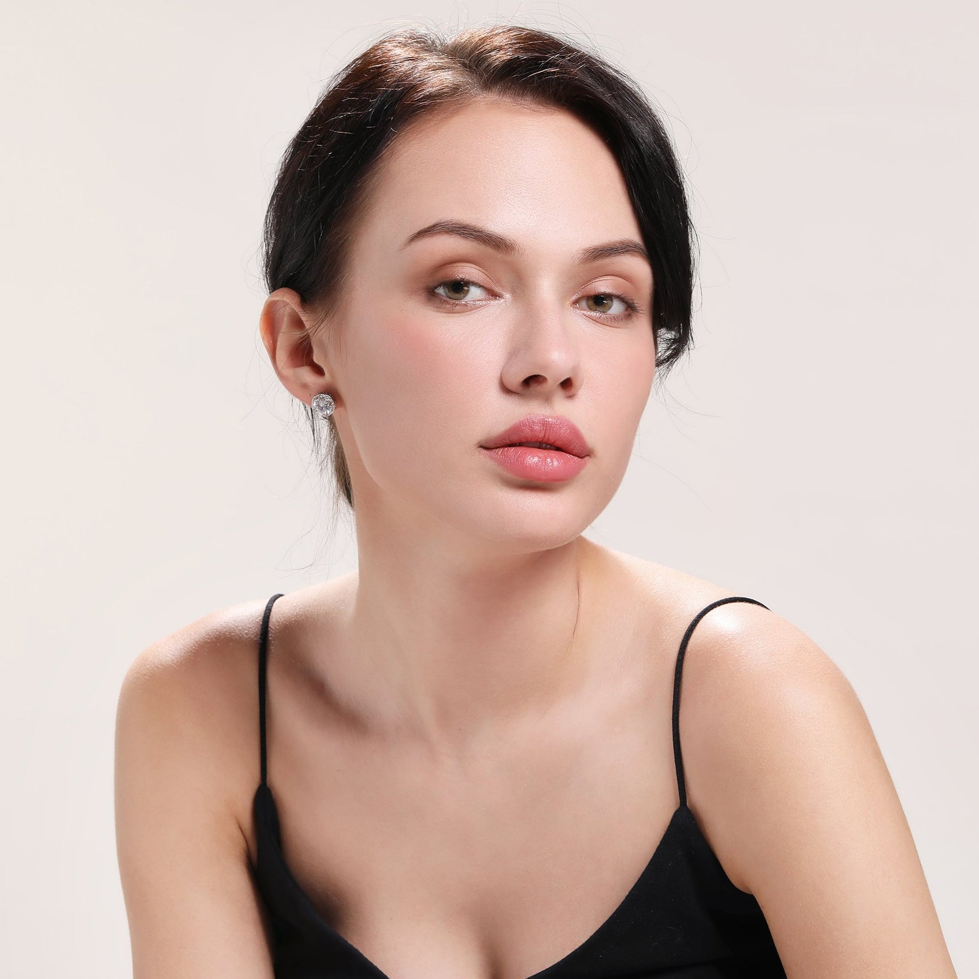 Our Ivy round studs are the perfect pair of studs you will ever own! An array of round CZ's are pave set on a round base shape, with a statement center marquise stone in the middle for a detailed look. It's perfect for everyday wear, yet statement enough for a edge to any look. Looks like the real thing!