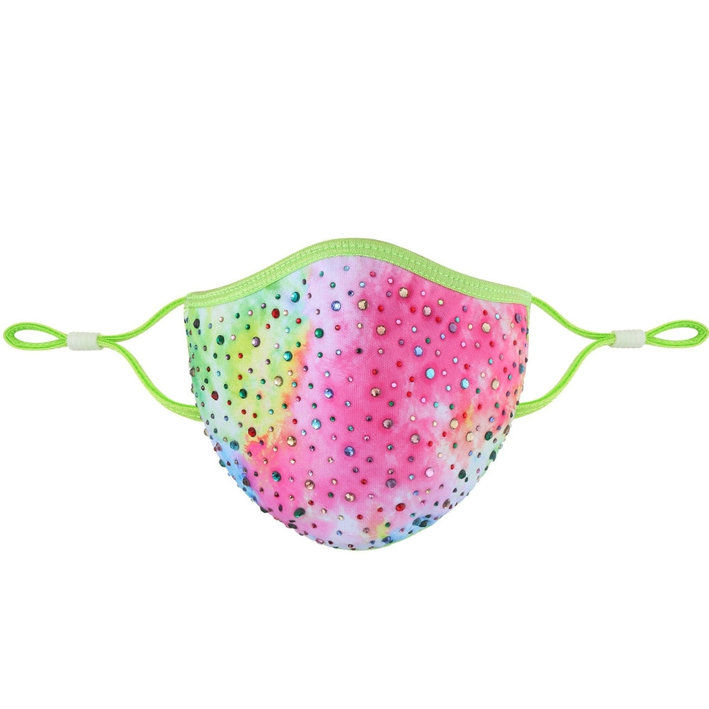 Crystal Tie-Dye Face Mask - Green & Pink with Colored Crystals