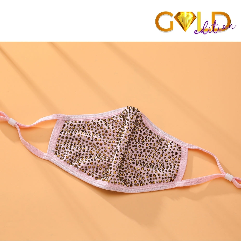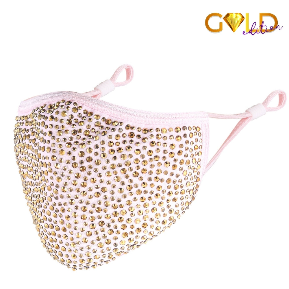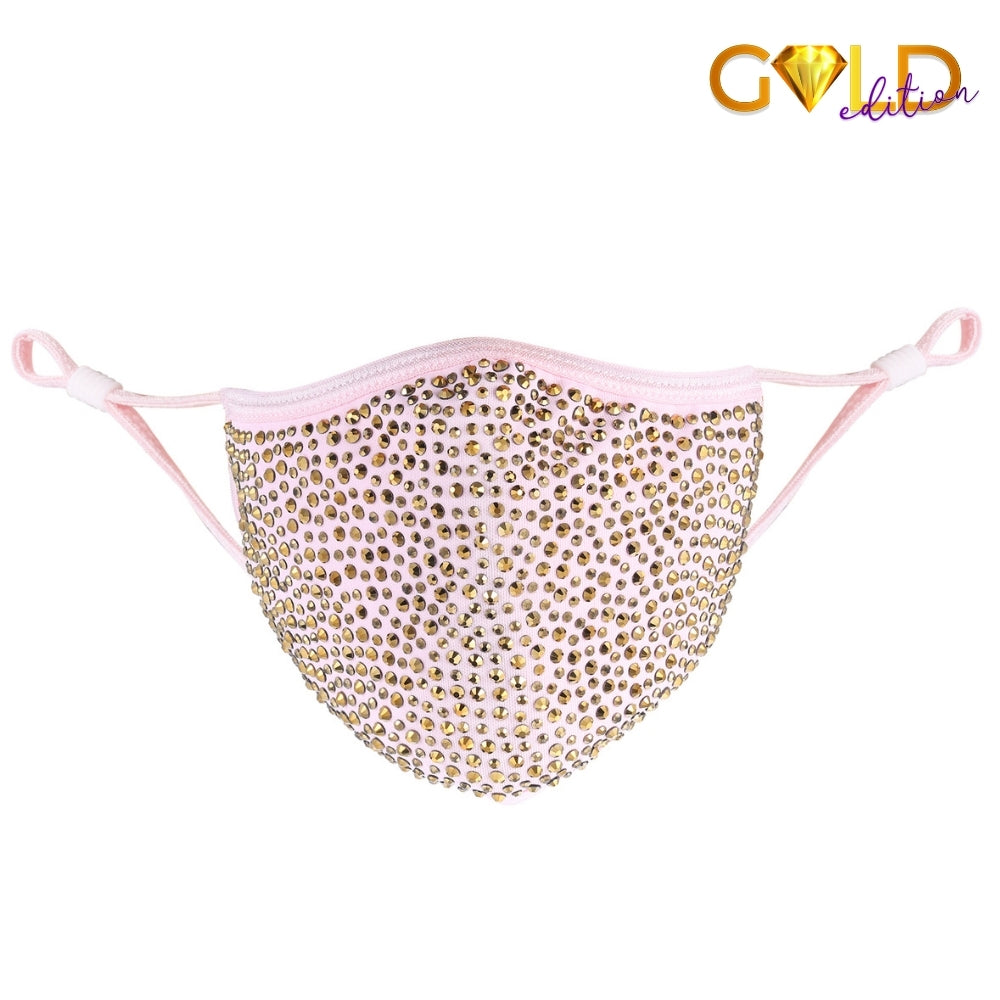 Our DESTINY GOLD COLLECTION Crystal Face mask is a great glam look for your face mask requirement! Our best seller is made with Light Pink Cotton & Gold Crystals. Embellished with highest quality Austrian crystals, set on an array of cotton color ways- this is the perfect accessory to make you look your best, day and night! Hand made with the highest quality!