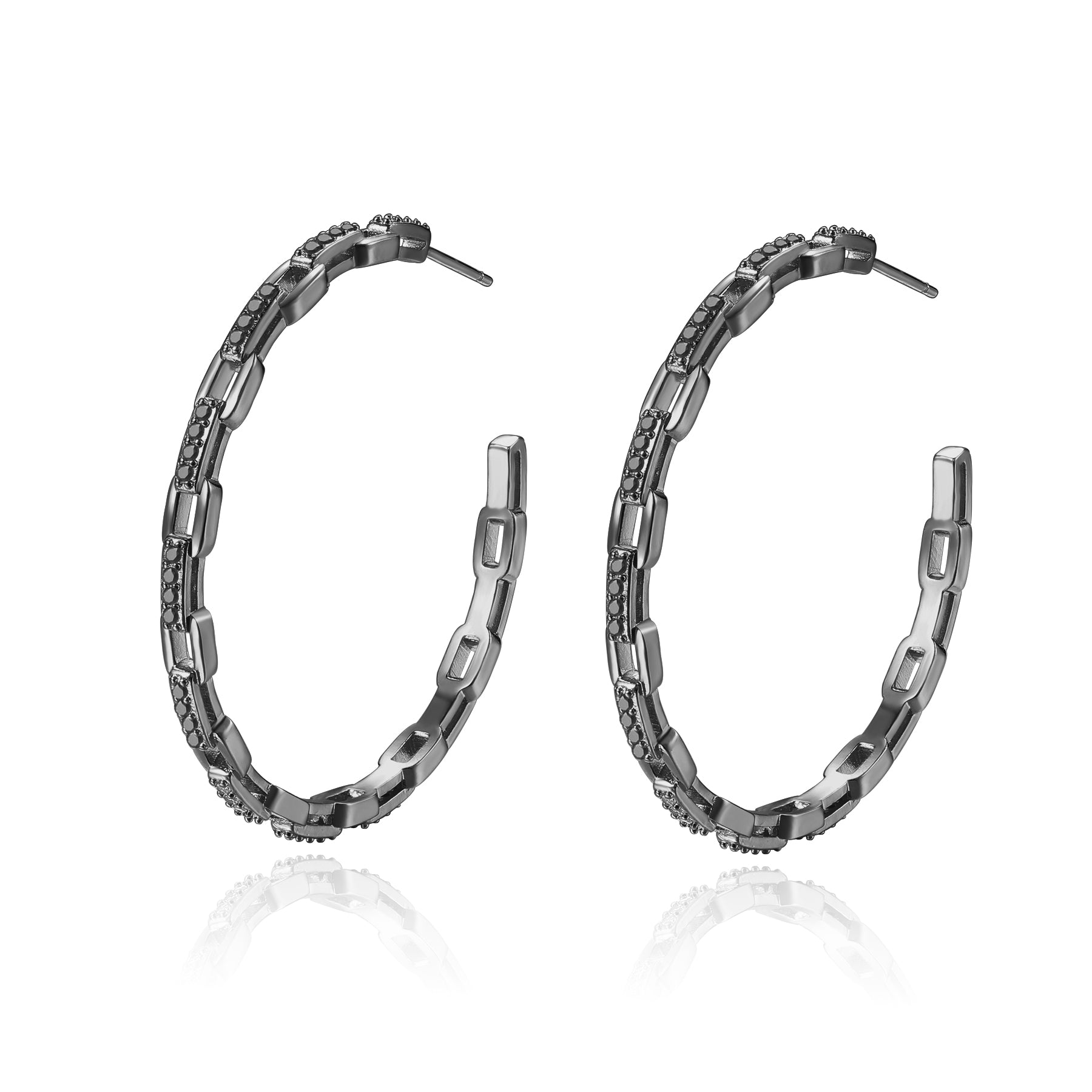 Our Dina Black Hoops are made with a trendy chain design. Sections of the chain design are pave set with CZ on the base to give a shiny glow. Our hoop earrings are a fast selling trend and loved by influencers and celebrities.