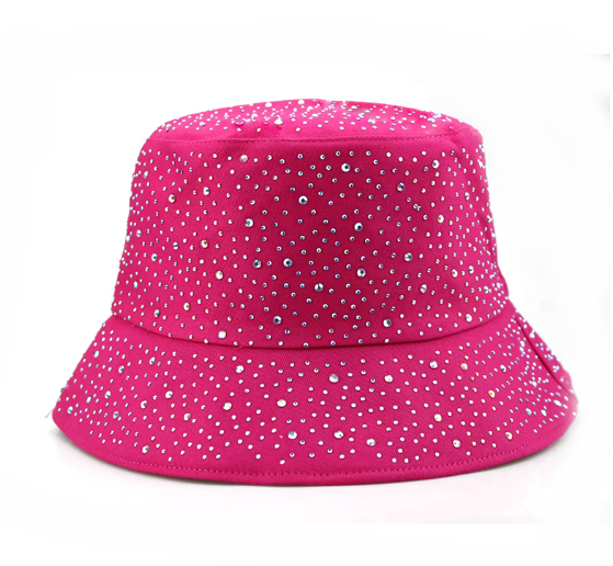 Introducing our latest addition to the fashion-forward wardrobe – the Ebony Bucket Hat. This stylish accessory is the epitome of urban chic, with its sleek dark pink fabric punctuated by a constellation of sparkling studs. Crafted for those who dare to stand out, this hat is not just an item of clothing, but a statement. Perfect for adding a touch of glamour to any outfit, its versatile design ensures it complements both casual daywear and more elegant evening attire. Whether you're shielding from the sun or jazzing up your ensemble, our Ebony Bucket Hat is the go-to choice for a look that's as bold as it is beautiful.