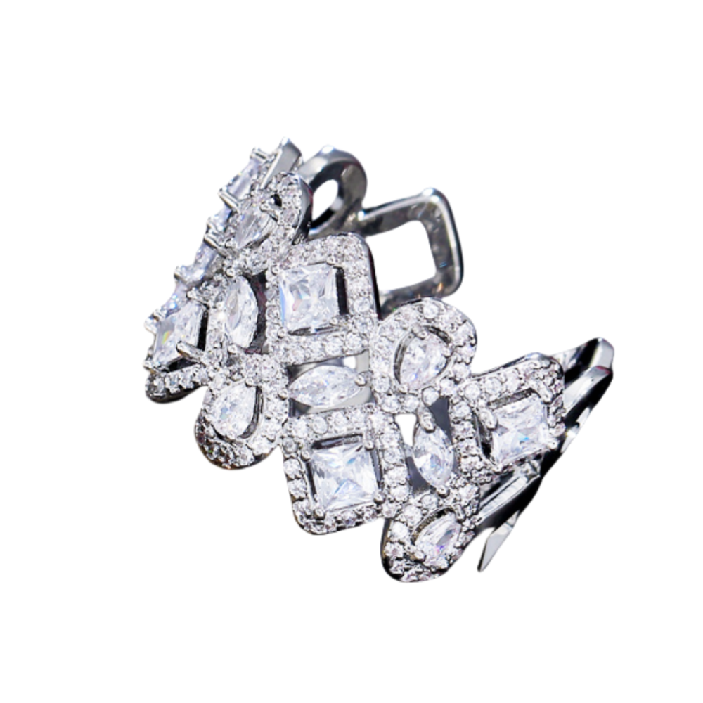 The Elie Adjustable Ring is a dazzling statement piece crafted with precision and elegance. Featuring a stunning array of radiant cubic zirconia stones set in an intricate design, this adjustable ring ensures a perfect fit for any occasion. Add timeless glamour to your collection with this show-stopping accessory!