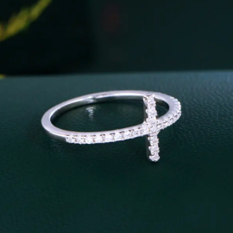 Gianna Silver Rhinestone Cross Rings