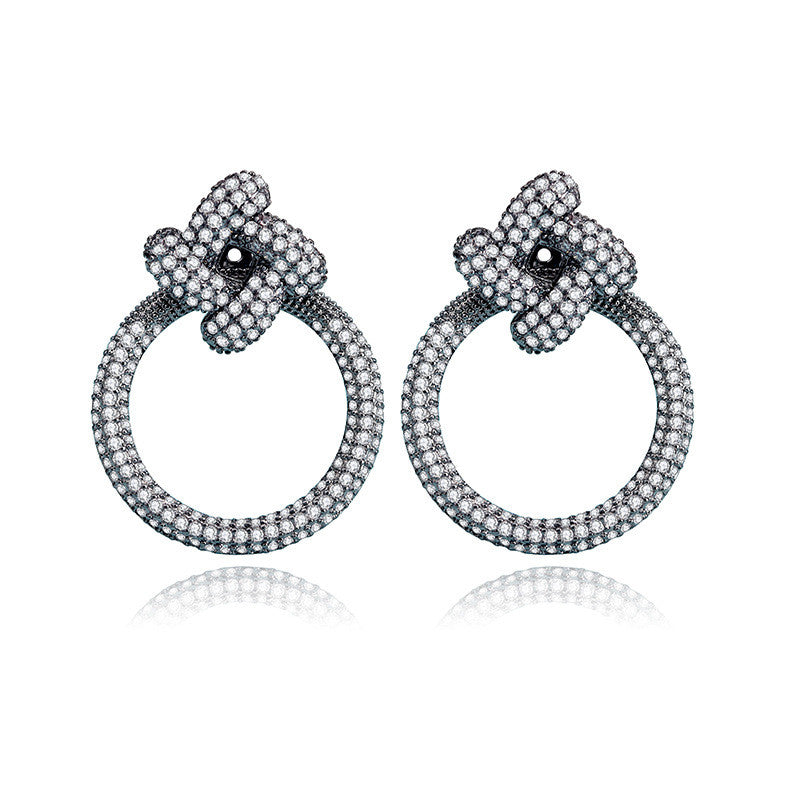 Our Glynis Designer Earrings are the perfect piece of jewelry for any special occasion - yet durable & fashionable enough to wear every day. Mirror shined, high grade cubic zirconia are patterned in a circle and topped with an elegant knot design. Made with black rhodium plating.