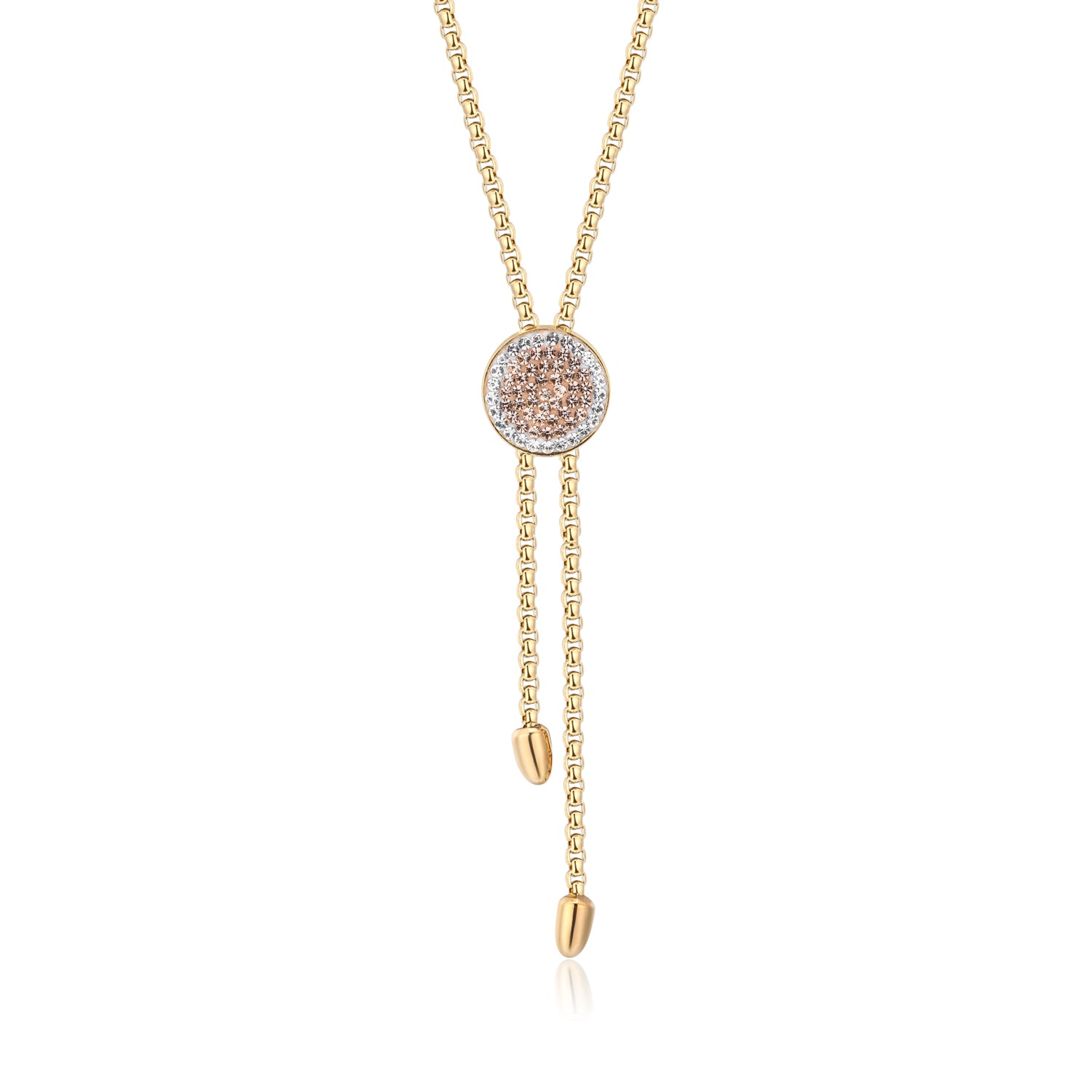 This necklace has 18ct Gold plating with White & Peach Crystals. It is finished with Natalie’s Secret Overlay Formula which is applied over the crystals as a finishing touch, ensuring the crystals never come out. We’re so confident, you get a 6 Month Guarantee on this collection!