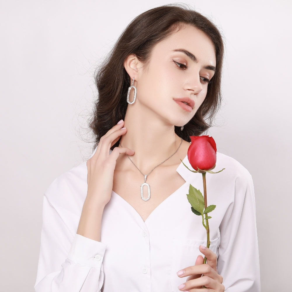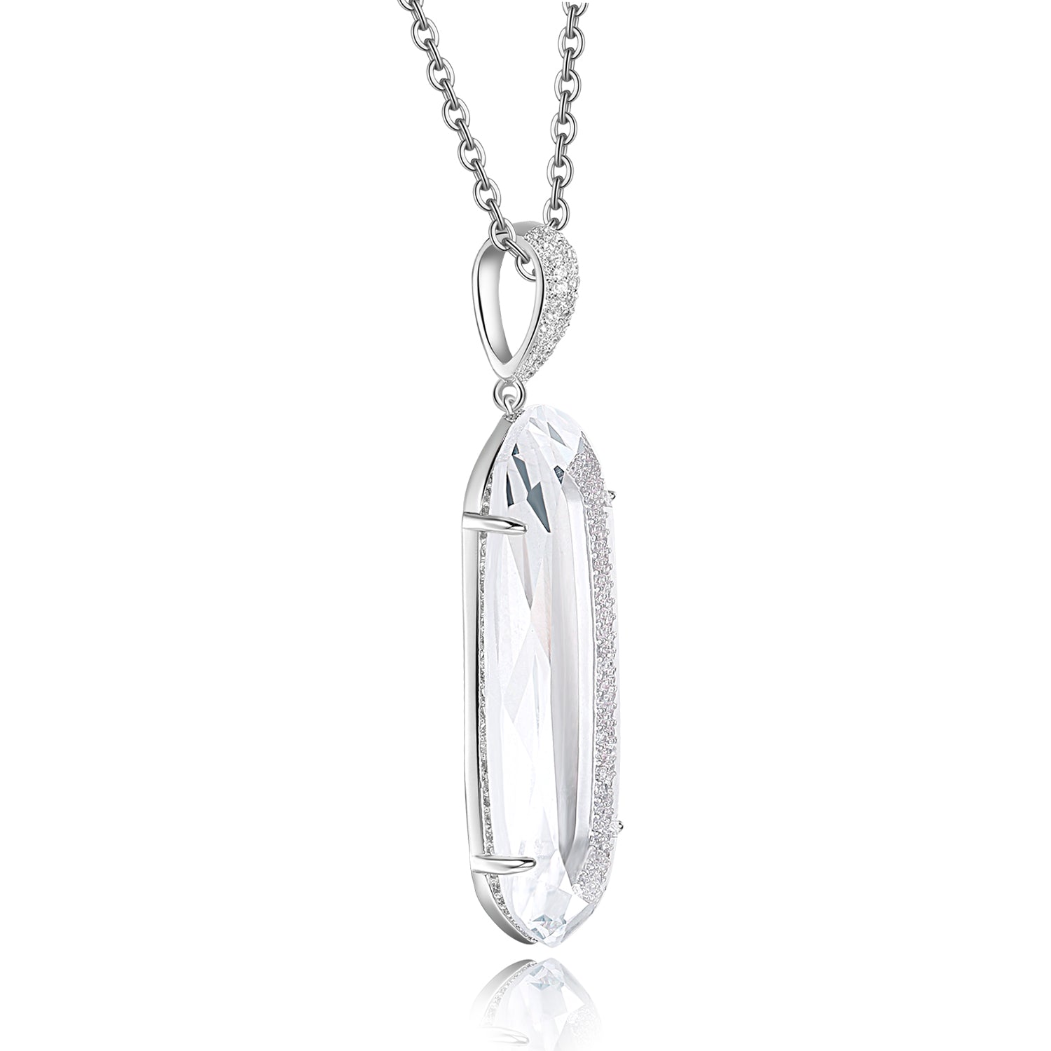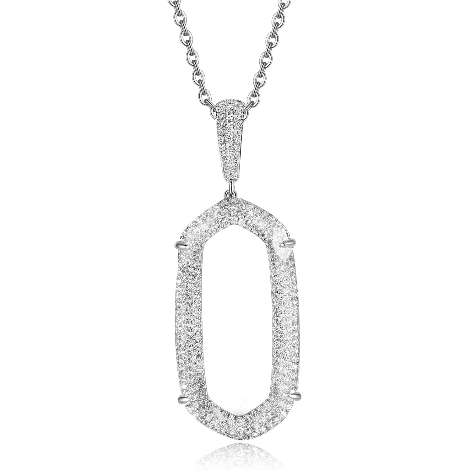 Our Jamilla necklace adds eye-catching sparkle & is the perfect accessory to dress up or down! This gorgeous necklace is detailed with rows of cubic zirconia then meticulously set with a unique cut white transparent synthetic gemstone on top. The design exudes a hypnotic elegance and a Must Have in the Natalie Mills collection!