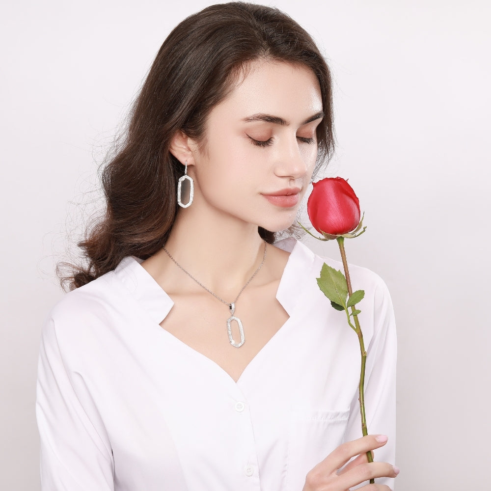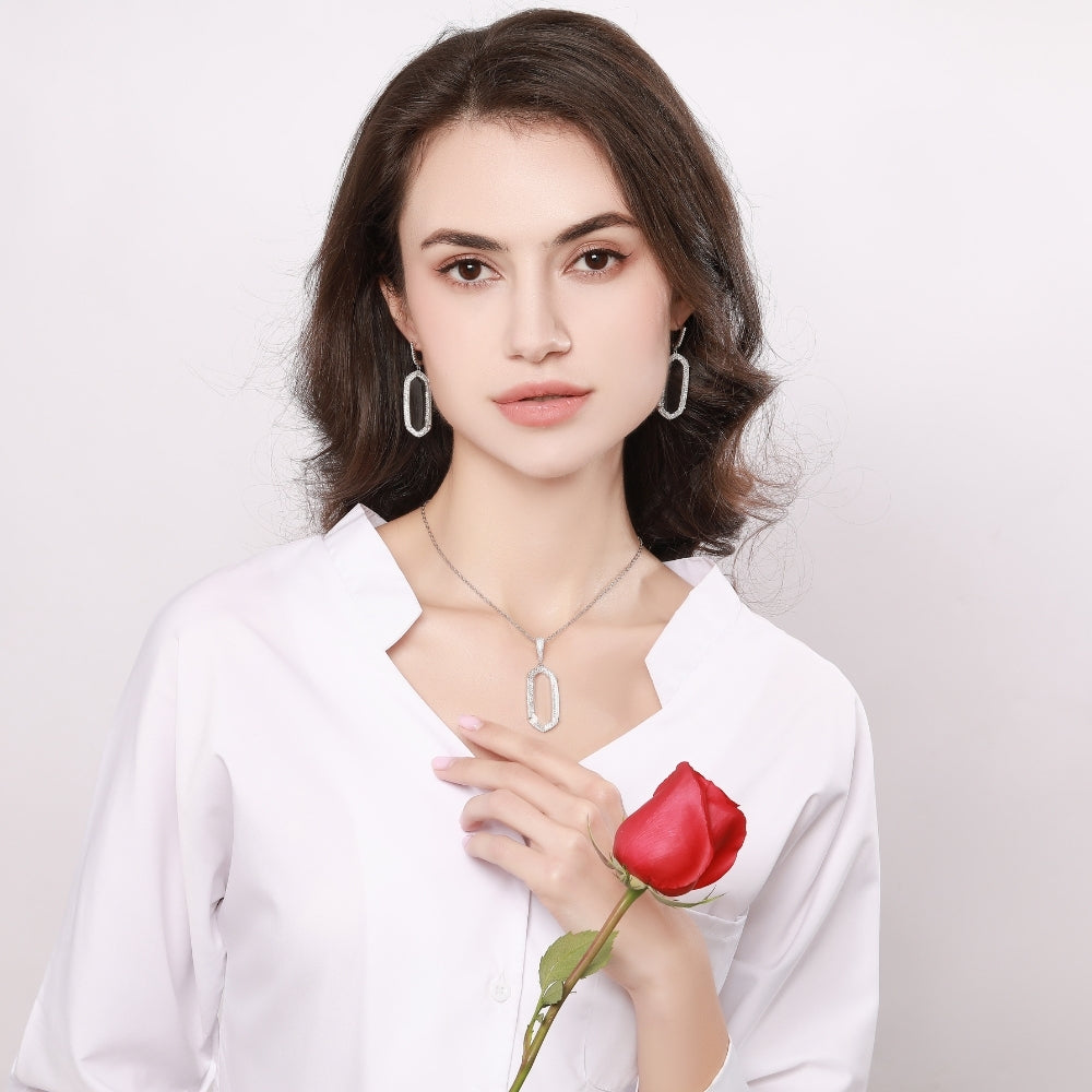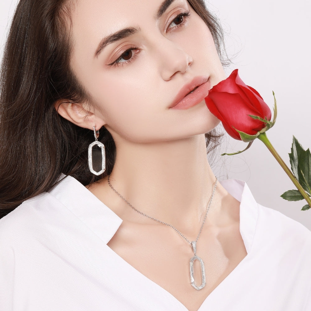 Our Jamilla necklace adds eye-catching sparkle & is the perfect accessory to dress up or down! This gorgeous necklace is detailed with rows of cubic zirconia then meticulously set with a unique cut white transparent synthetic gemstone on top. The design exudes a hypnotic elegance and a Must Have in the Natalie Mills collection!