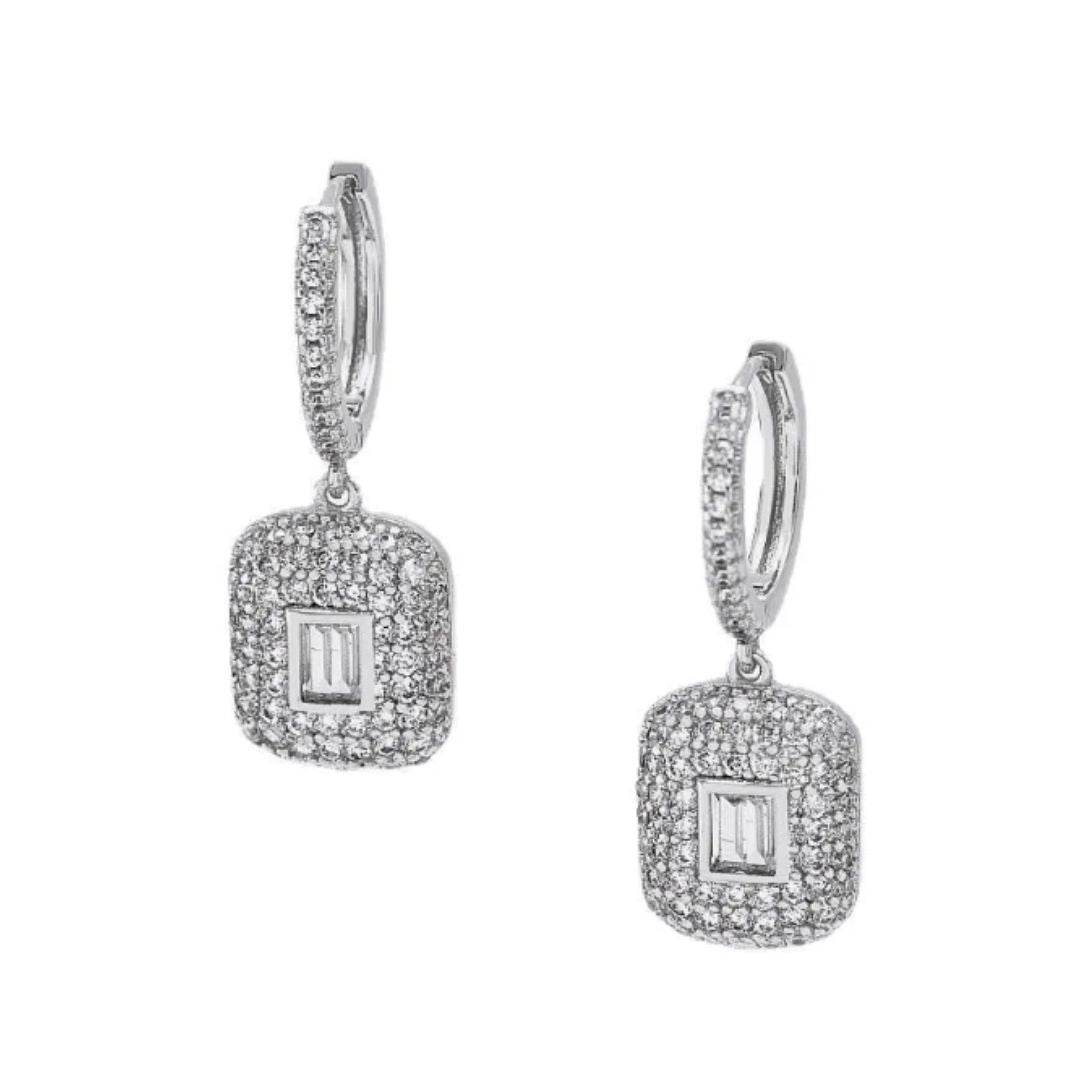 Elevate your elegance with our Joelle Designer Earrings, a stunning blend of sophistication and sparkle. Featuring a dazzling pavé setting with a radiant baguette-cut center stone, these earrings exude timeless charm. Their delicate drop design adds a touch of refined luxury to any outfit. Perfect for special occasions or everyday glamour.