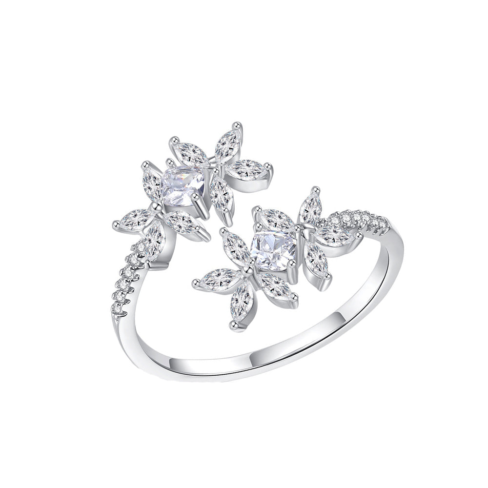 The Junie Adjustable Ring features a charming row of petite flower designs, each adorned with sparkling cubic zirconia stones. Its adjustable fit adds versatility, making it a perfect piece for adding a touch of elegance to any look.