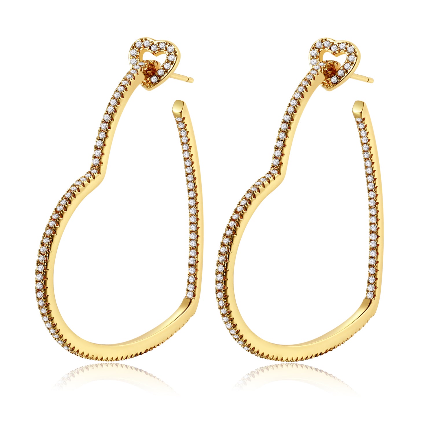 Milena means love! The hottest trend in hoop earrings in the Natalie Mills collection, the Milena heart hoops are made with CZ along the front and back - beaming with elegance and class. Made with Gold Plating, these gold hoops are the perfect accessory to dress you up or down!