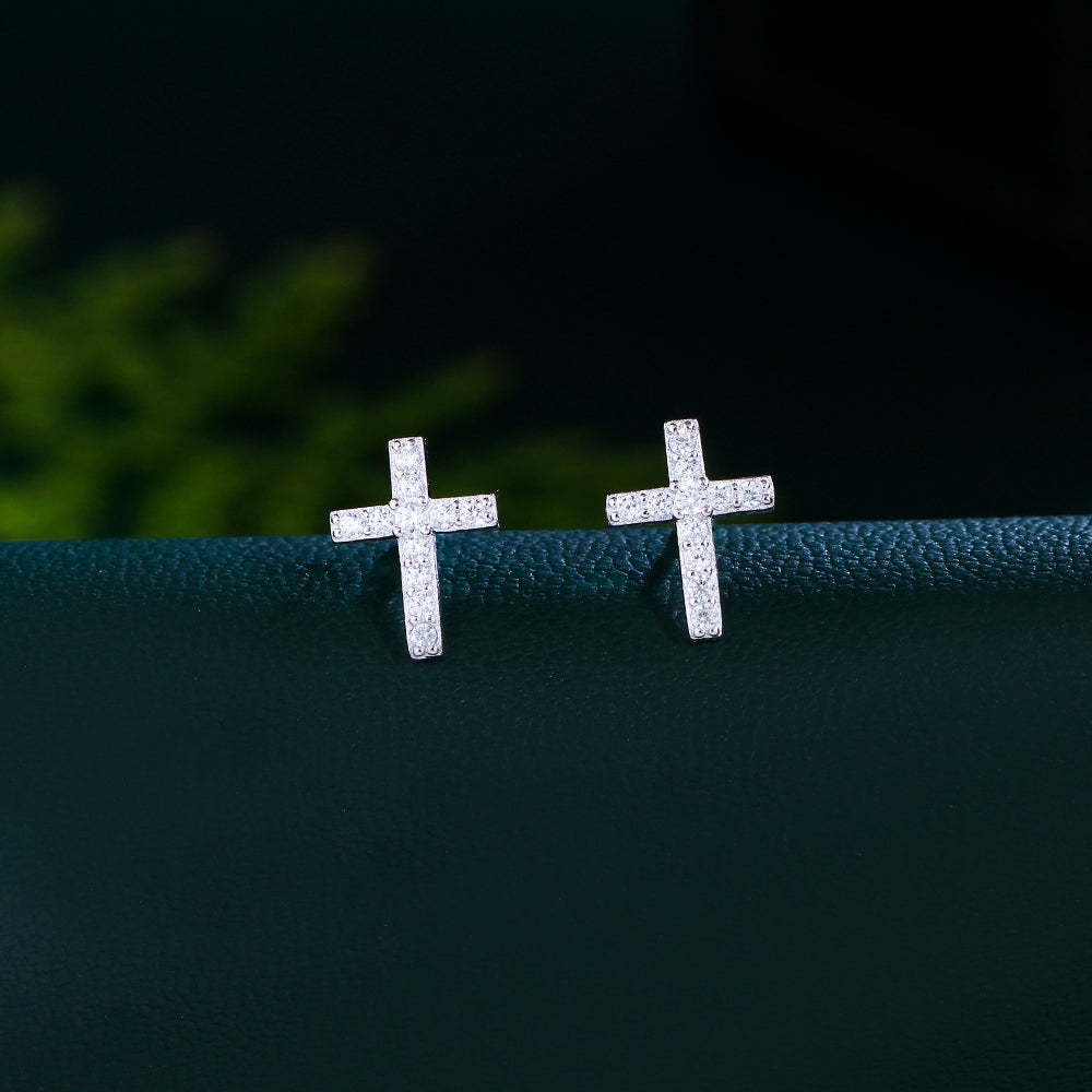Elevate your style with our Neriah Silver Rhinestone Cross Earrings. Featuring a sleek sterling silver and adorned with sparkling rhinestones, these elegant cross-shaped studs are perfect for any occasion, blending timeless sophistication with a modern touch. Lightweight and versatile, they make a meaningful statement whether worn casually or for special events.