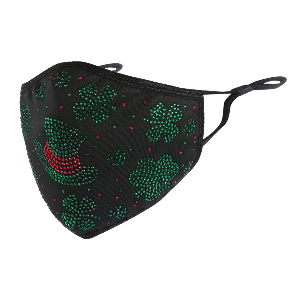 Let's Celebrate St Patrick's Day with our limited collection of Face Masks to keep you in the spirit, having fun with this occasion and staying safe and sensible! This limited time design is set on black cotton with a hat & clover design in green and red Austrian Crystals!