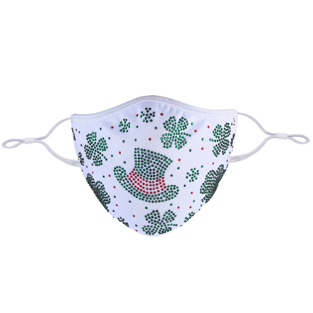 Let's Celebrate St Patrick's Day with our limited collection of Face Masks to keep you in the spirit, having fun with this occasion and staying safe and sensible! This limited time design is set on white cotton with a hat & clover design in green and red Austrian Crystals!