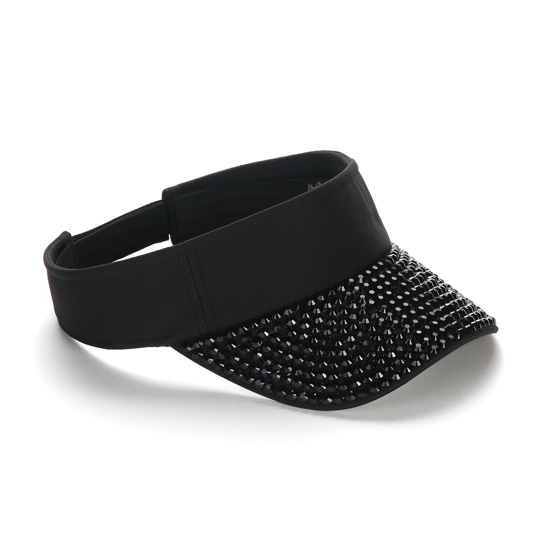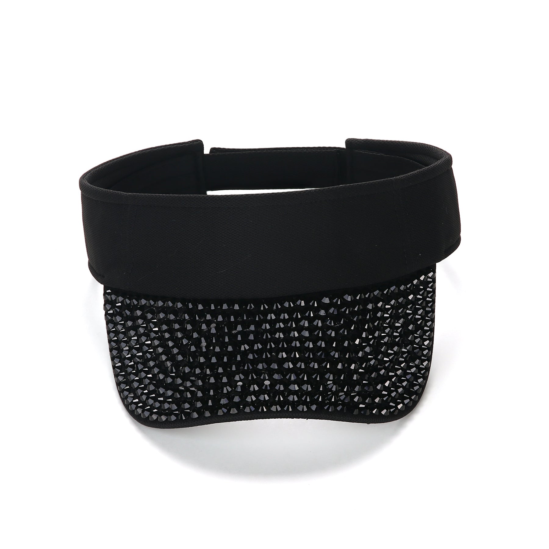 Introducing the Stacy Visor: The ultimate accessory for those who shine bright. This visor combines a clean, crisp black band with a dazzlingly vibrant crystal-adorned brim, offering both impeccable style and essential sun protection. The high-quality crystals catch and reflect light from every angle, making it a perfect choice for outdoor sports, leisurely walks, or any sunny day occasion where you want to make a sparkling impression. Adjustable for comfort, the Stacy Visor is a must-have for those who love to blend practicality with a splash of glamour.