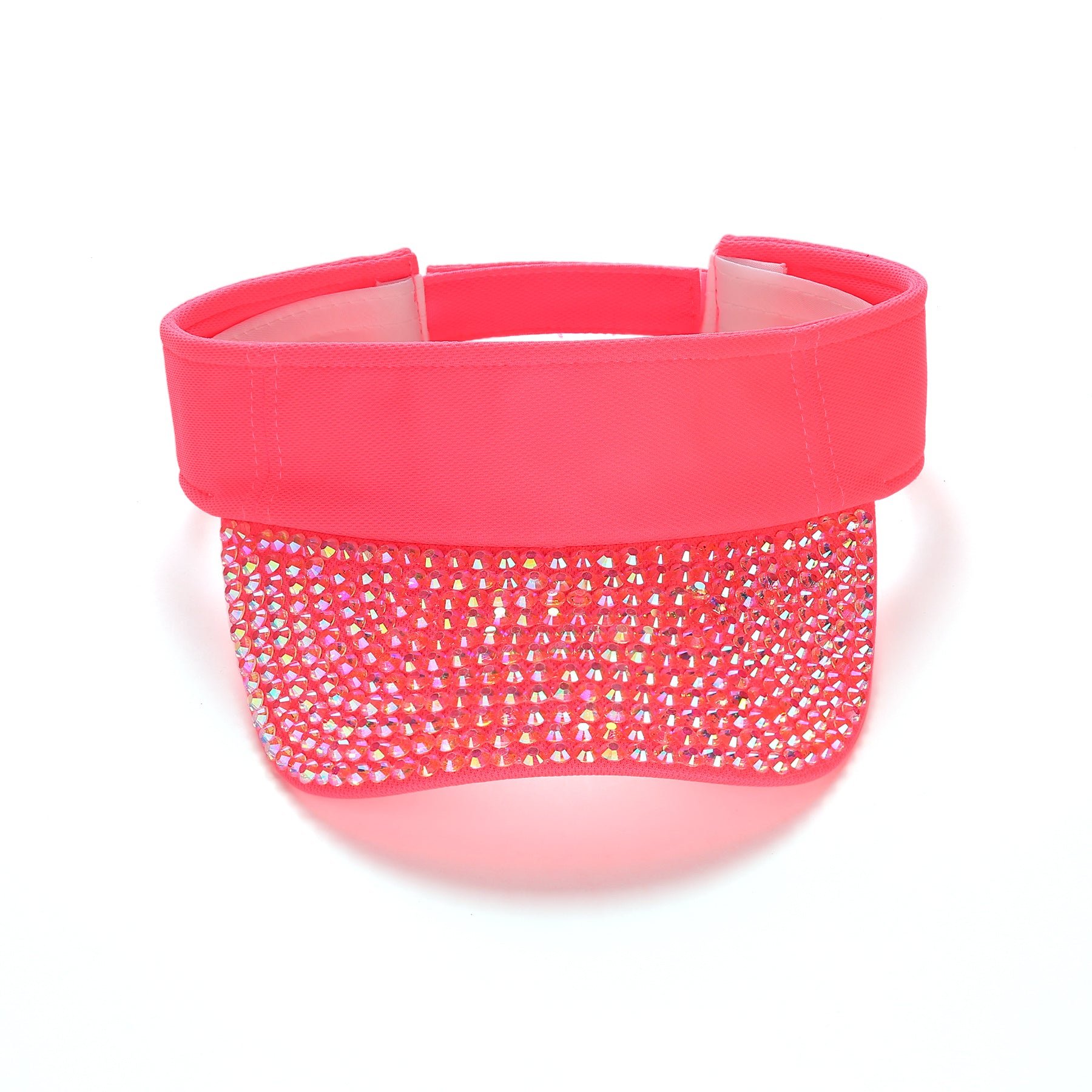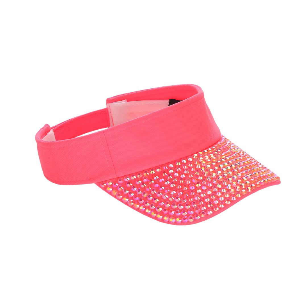 Introducing the Stacy Visor: The ultimate accessory for those who shine bright. This visor combines a clean, crisp salmon band with a dazzlingly vibrant crystal-adorned brim, offering both impeccable style and essential sun protection. The high-quality crystals catch and reflect light from every angle, making it a perfect choice for outdoor sports, leisurely walks, or any sunny day occasion where you want to make a sparkling impression. Adjustable for comfort, the Stacy Visor is a must-have for those who love to blend practicality with a splash of glamour.
