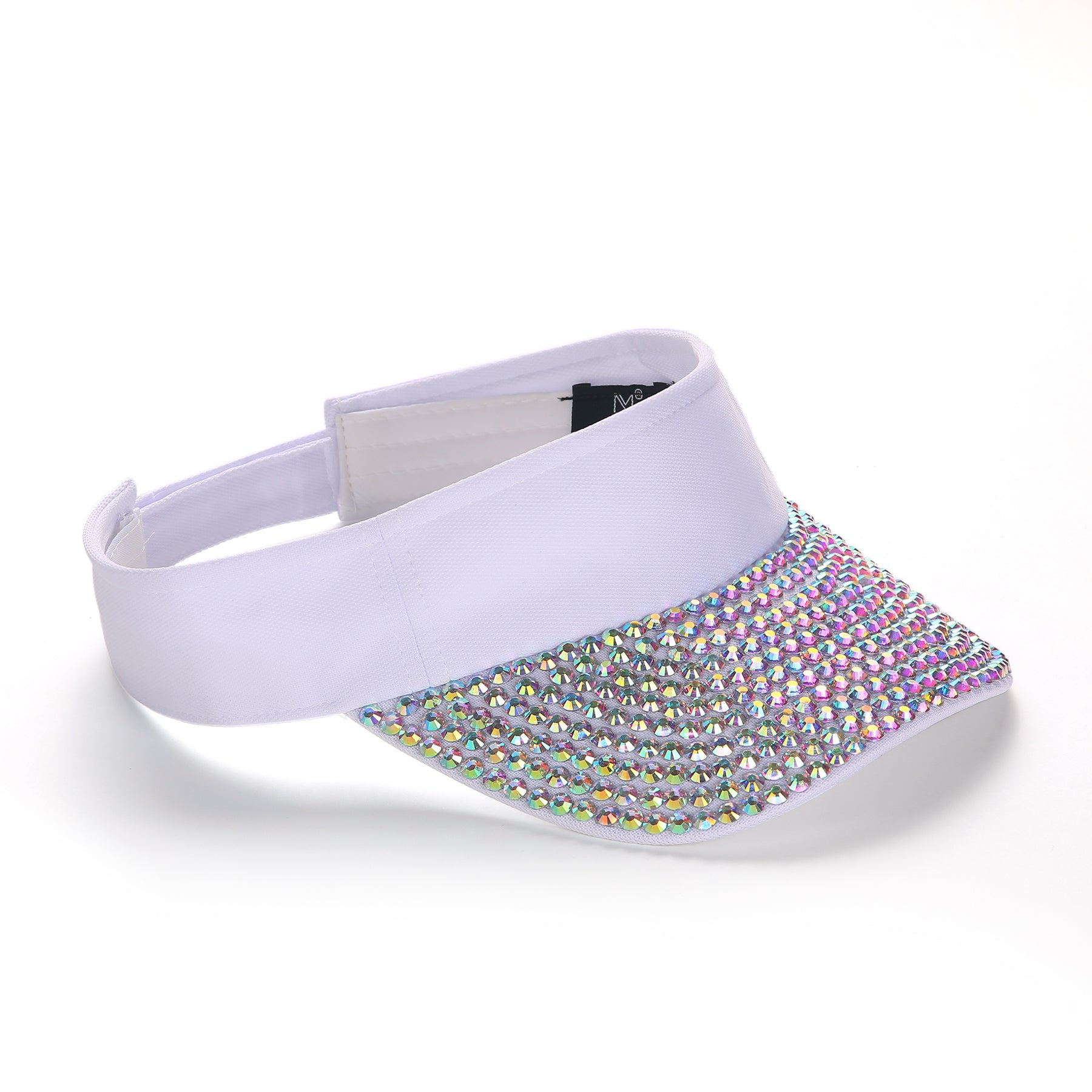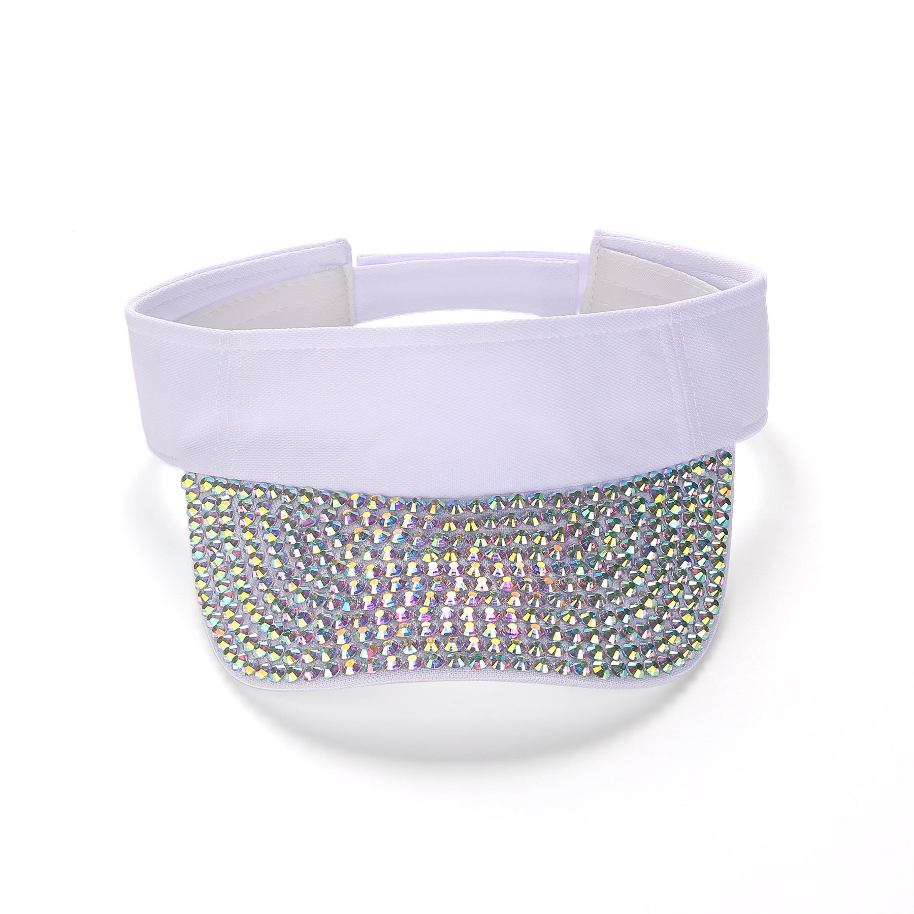 Introducing the Stacy Visor: The ultimate accessory for those who shine bright. This visor combines a clean, crisp black band with a dazzlingly vibrant crystal-adorned brim, offering both impeccable style and essential sun protection. The high-quality crystals catch and reflect light from every angle, making it a perfect choice for outdoor sports, leisurely walks, or any sunny day occasion where you want to make a sparkling impression. Adjustable for comfort, the Stacy Visor is a must-have for those who love to blend practicality with a splash of glamour.